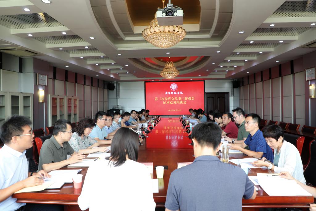 为做好学校第三次党代会筹备工作,完善党委工作报告,8月24日,学校党委召开第三次党代会党委工作报告征求意见座谈会。座谈会分为3个组别开展,听取、吸纳方方面面意见建议。